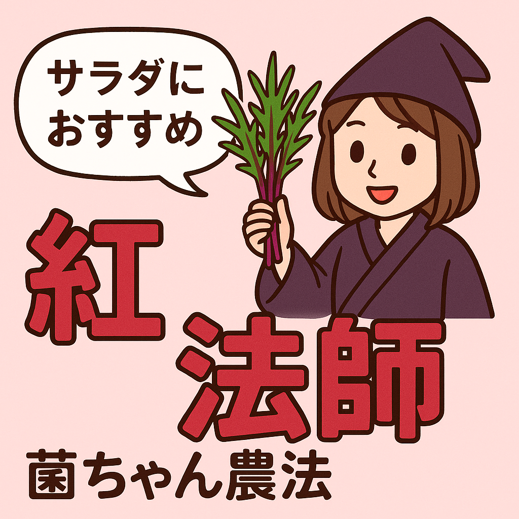 ミズナです。茎が赤い色でサラダにもおすすめです。